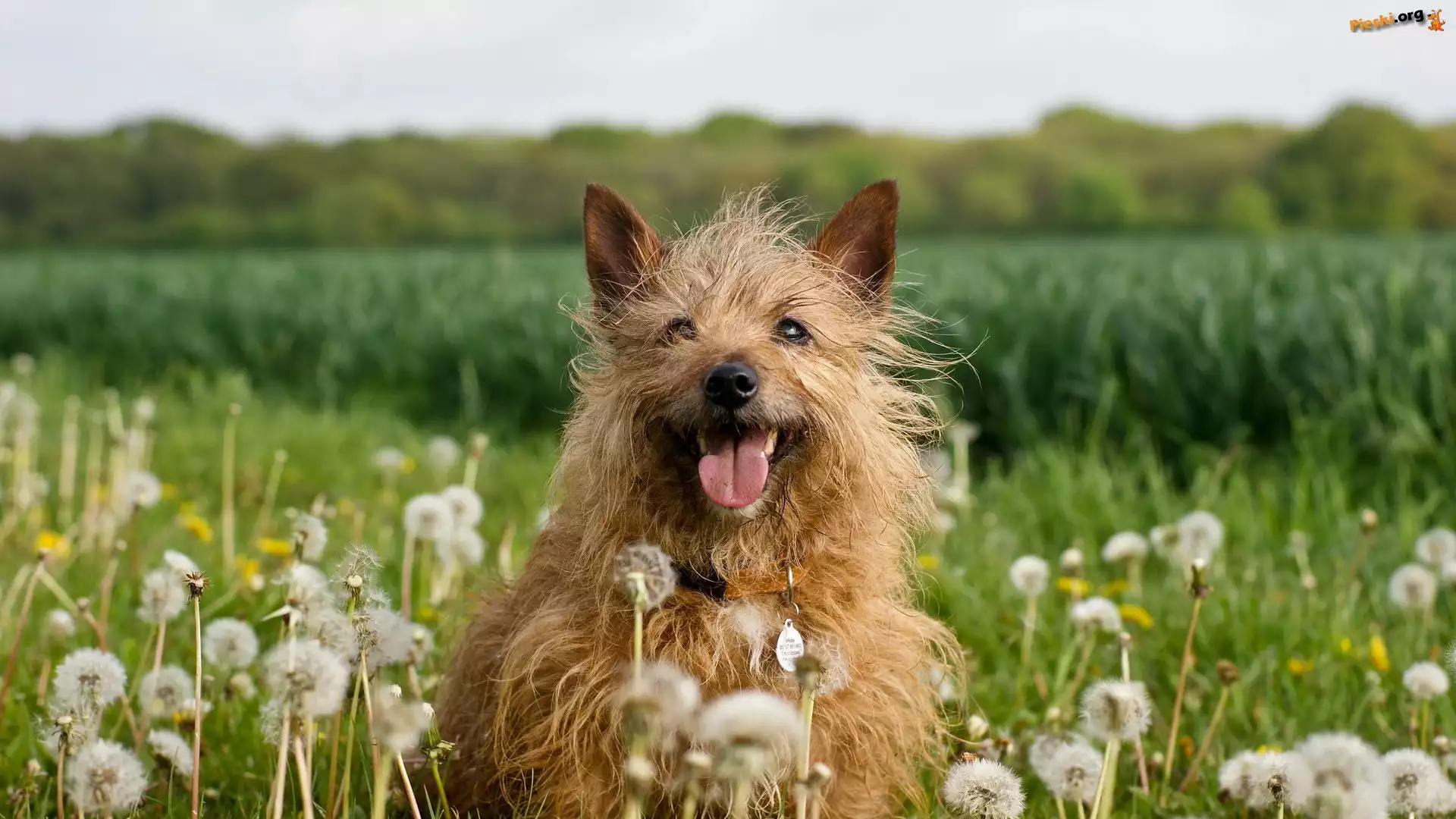 Łąka, Pies, Cairn terrier, Dmuchawce