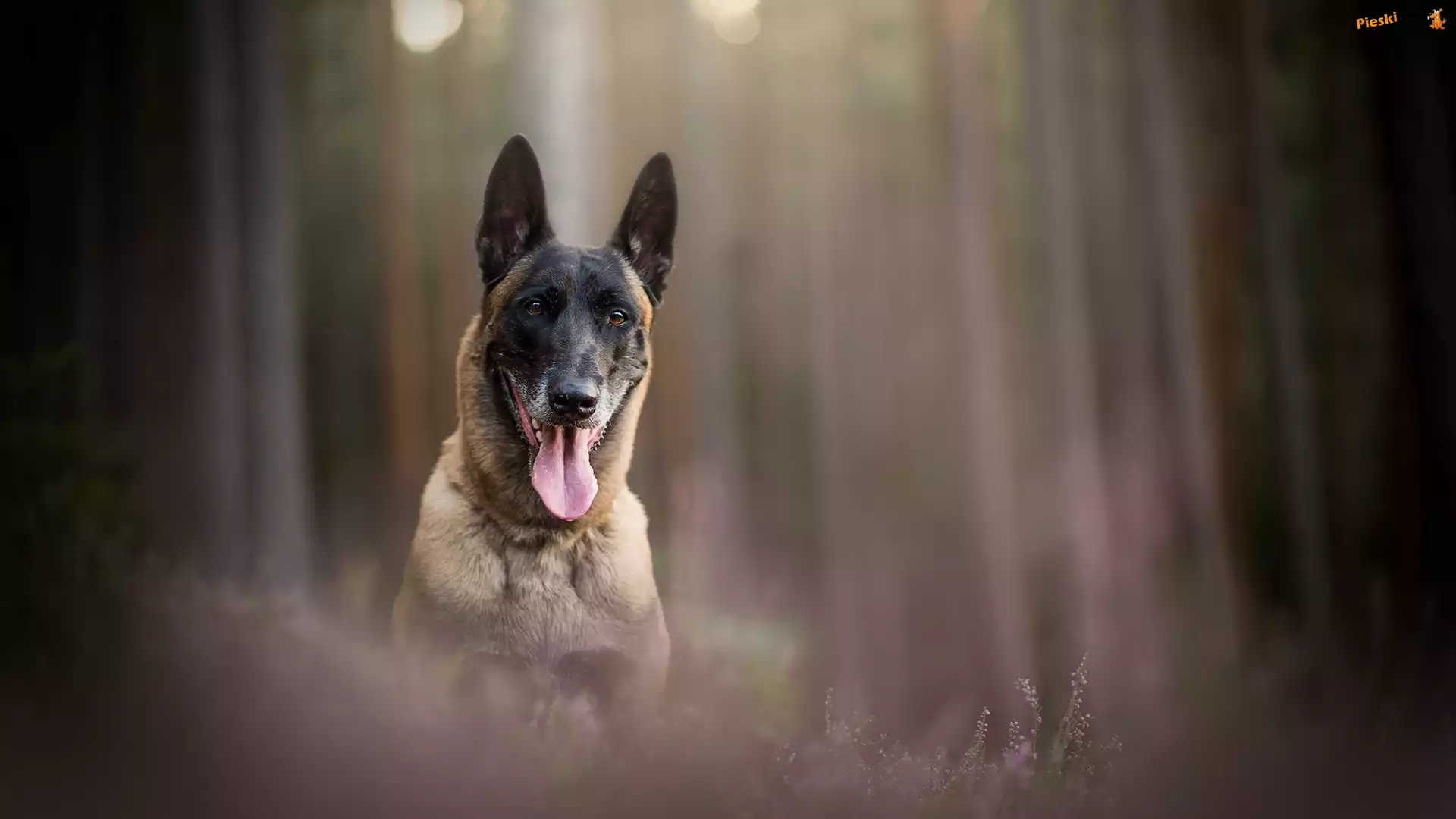 Wrzosy, Pies, Rozmyte, Mordka, Owczarek belgijski malinois, Jęzor, Tło