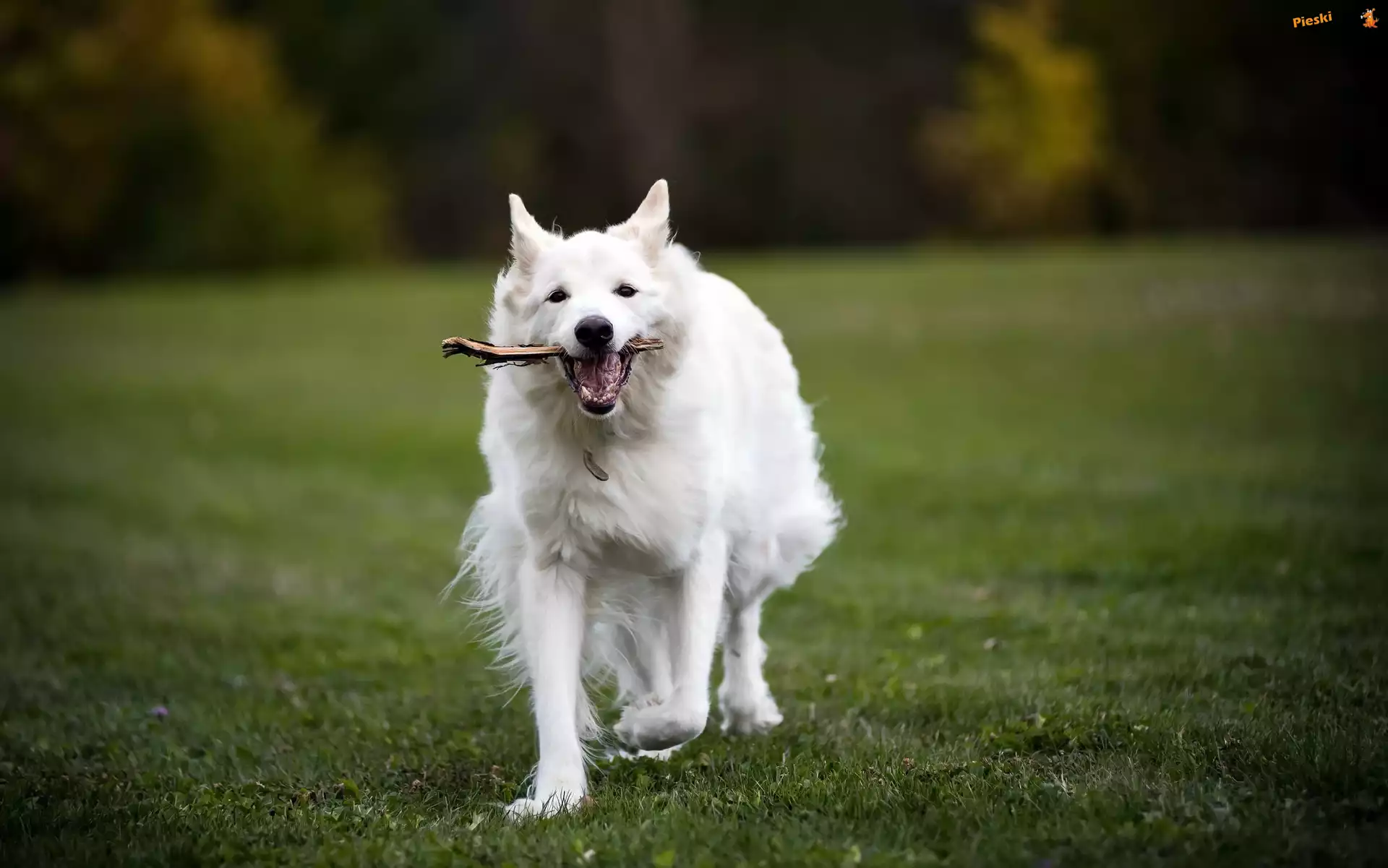 Trawa, Biały owczarek szwajcarski, Łąka, Aport, Pieski