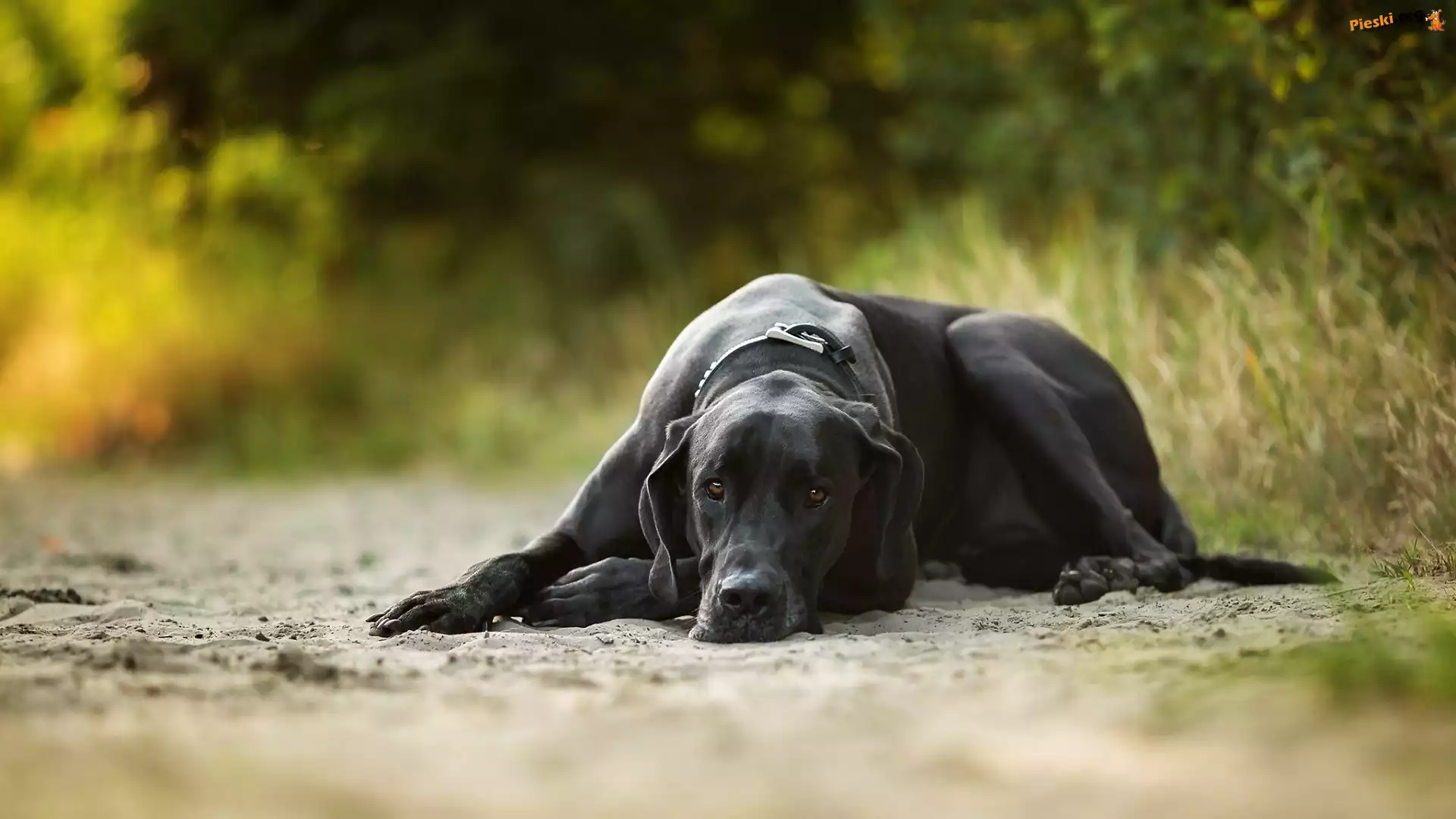 Trawa, Czarny, Leżący, Pies, Piasek, Pieski