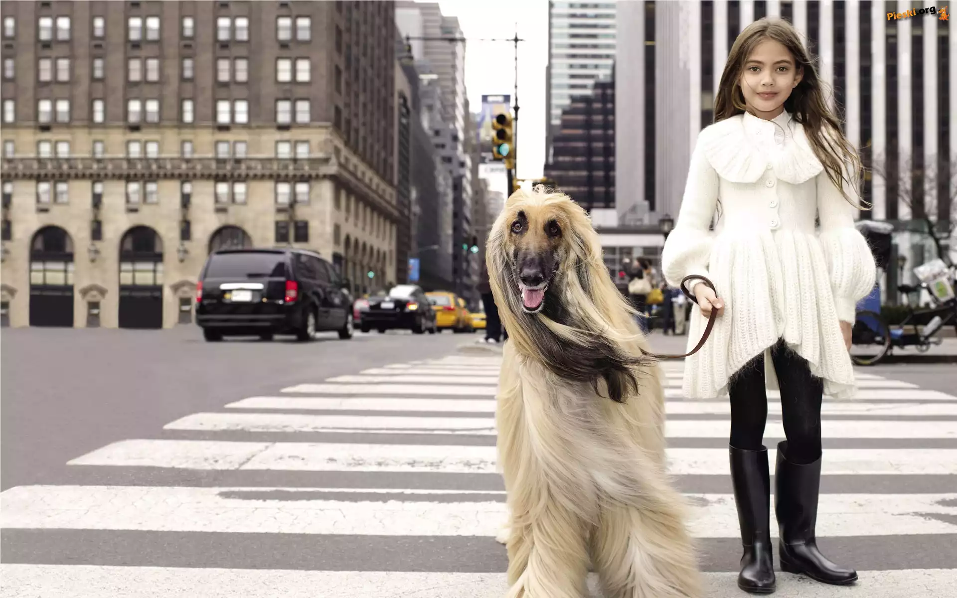 Nowy Jork, Dziewczynka, Ulica, Chart afgański, Pieski