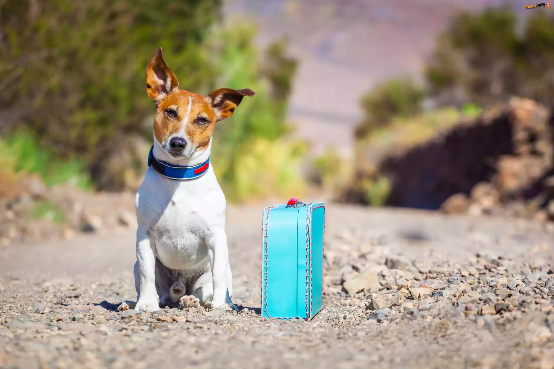 Pies, Walizka, Podróżnik, Jack Russell, Terrier, Droga, Pieski