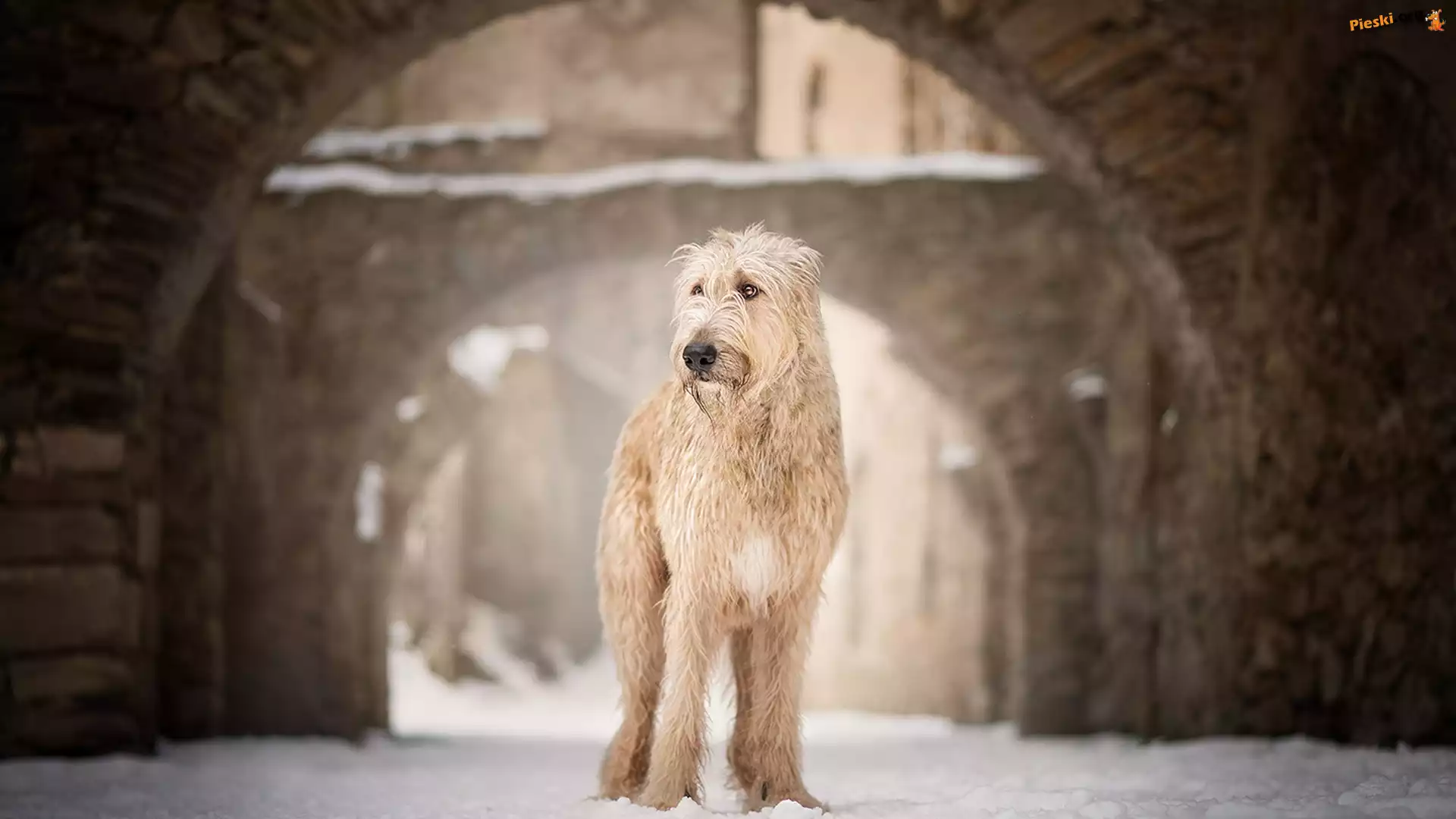 Zabudowania, Pies, Wilczarz irlandzki, Śnieg, Pieski