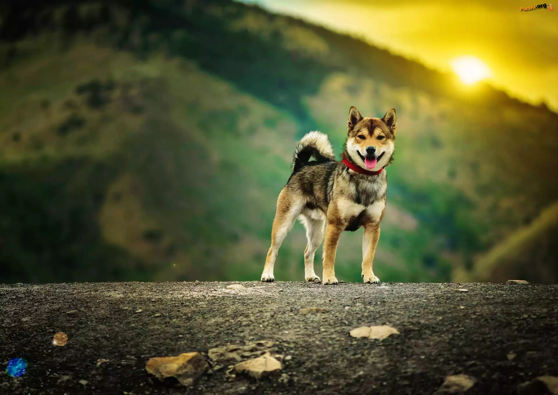 Zachód, Pies, Droga, Słońca