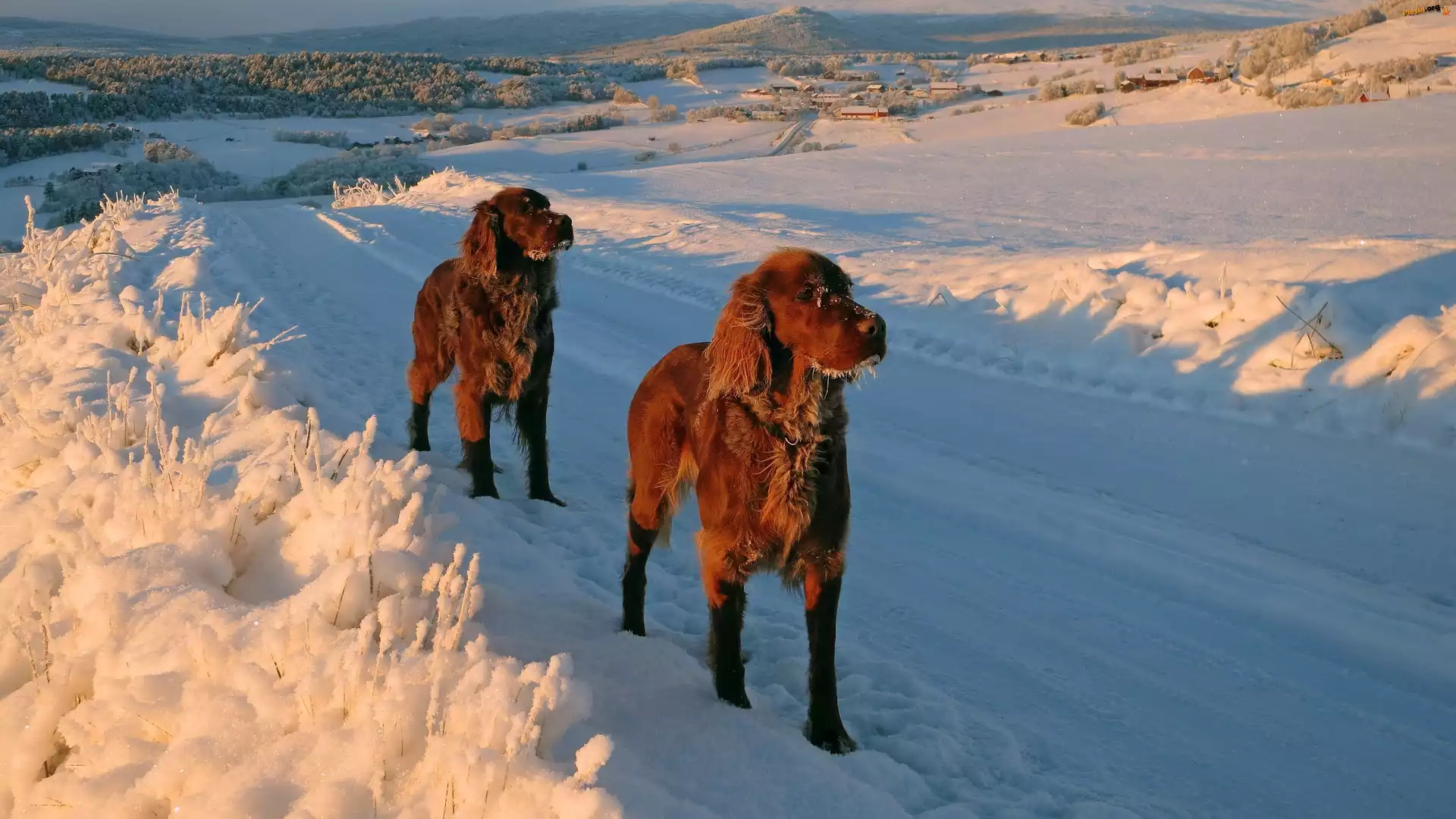 Zima, Psy, Dwa, Droga, Śnieg, Setery