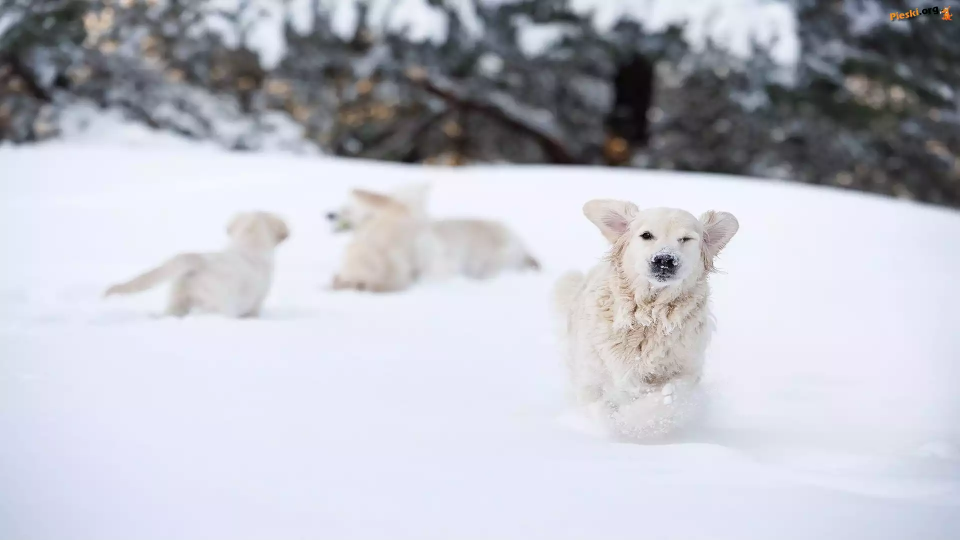 Zabawa, Śnieg, Pies, Zima, Golden retriever, Pieski