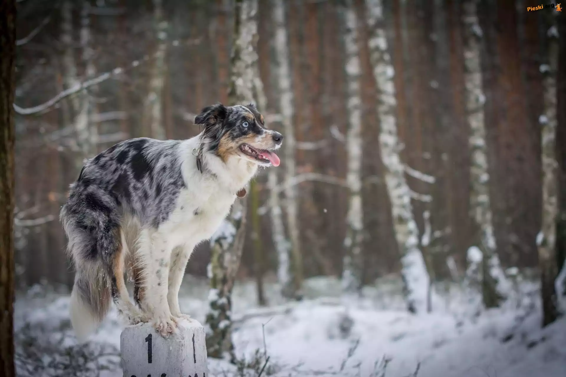 Sztuczka, Słupek, Zima, Border Collie, Pieski